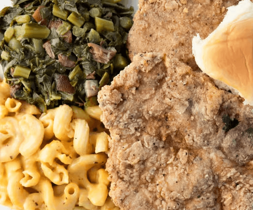 Omg, everything was so good! The chicken was crispy and perfectly seasoned, the mac and cheese was AMAZING and so flavorful. And the greens? TO DIE FOR. I’ll be back again!